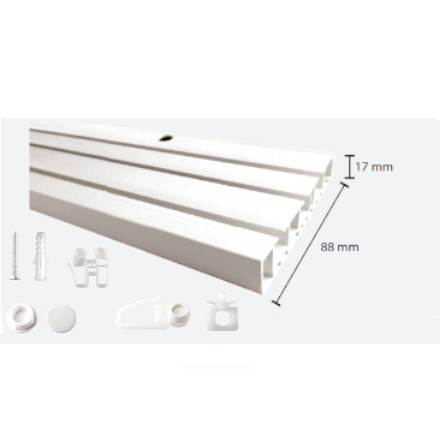 Háromsoros fehér mennyezeti függönysín, 120 cm (szerelékcsomaggal)